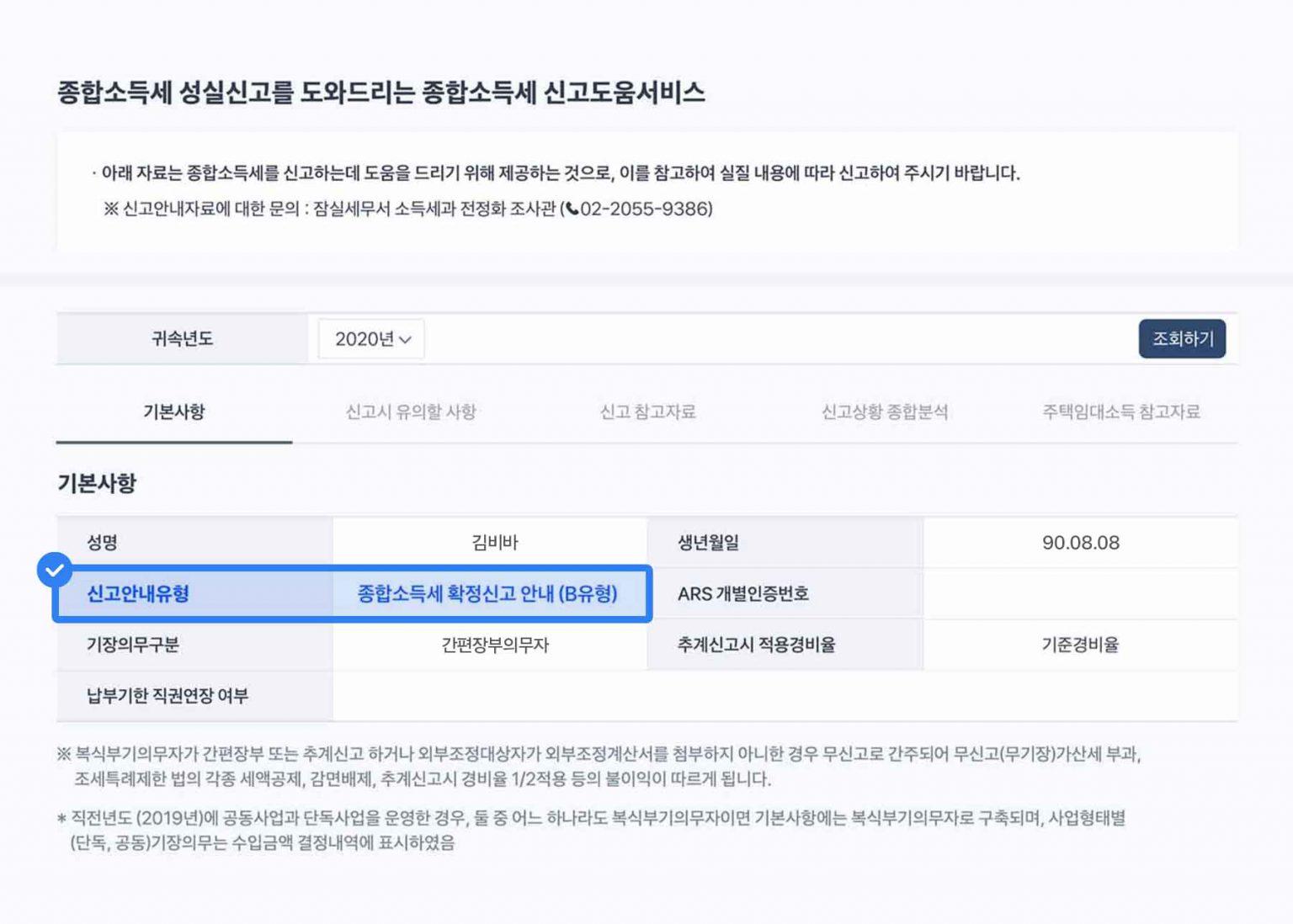 - 혼자서도 종합소득세 신고가 가능한 유형인지, 국세청에서 보낸 종합소득세 신고안내유형을 확인해 보세요.