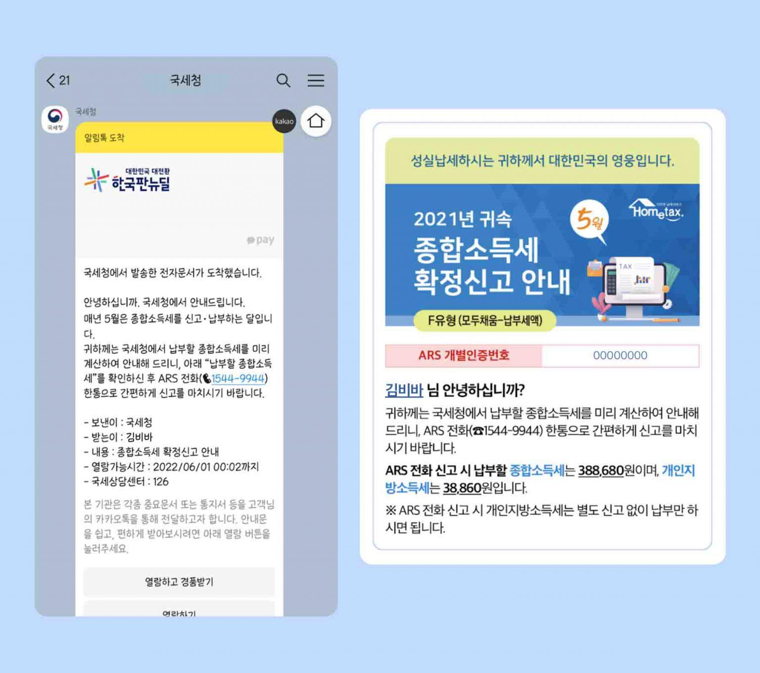 개별인증번호는 우편으로 받은 ‘종합소득세 신고 안내문’, 홈택스 또는 모바일 카카오 국세청 채널이 보낸 알림톡에서 확인 가능해요.