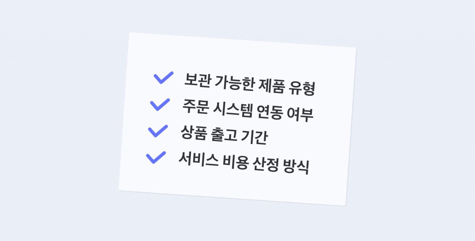 풀필먼트 서비스를 이용해야겠다 마음을 먹었다면, 그 다음에 할 일은 나에게 맞는 서비스를 고르는 거예요. 풀필먼트 서비스는 크게 4가지 기준을 고려하는 것이 좋아요.