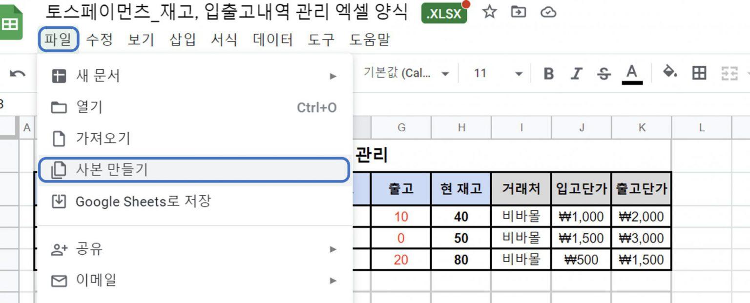 step 2. 페이지 상단 파일 > 사본 만들기를 클릭해 시트 사본을 다운로드