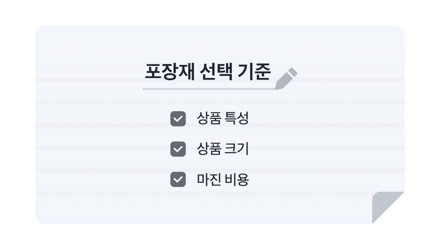 마지막으로 가장 중요한 건 ‘비용’을 고려하는 거예요. 포장에 드는 비용은 상품이 판매될 때마다 계속 함께 발생하는 비용이기 때문에 비용을 신중하게 고려해야 해요. 처음엔 차이가 크지 않아 보이더라도 판매가 늘어날수록 옵션 간 비용의 차이도 커지기 때문이에요.
