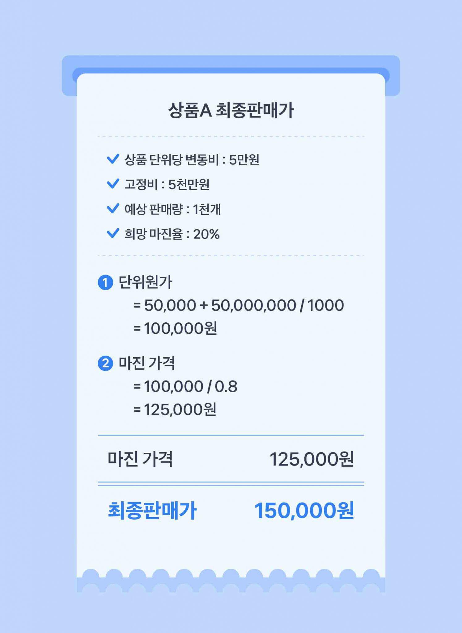 물론 ‘예상 판매량’ 등을 처음부터 완벽하게 맞추기 어렵기 때문에 대략적으로 어림잡아 계산해야 하지만, 계속 쇼핑몰을 운영해 보시면서 대략적인 평균값에 대한 감을 잡으시면 점점 더 정확하게 계산할 수 있어요.