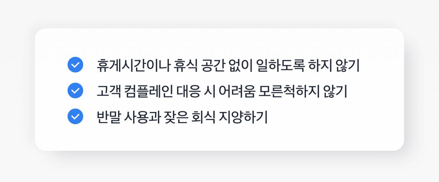 3️⃣ 반말 사용과 잦은 회식은 지양해요