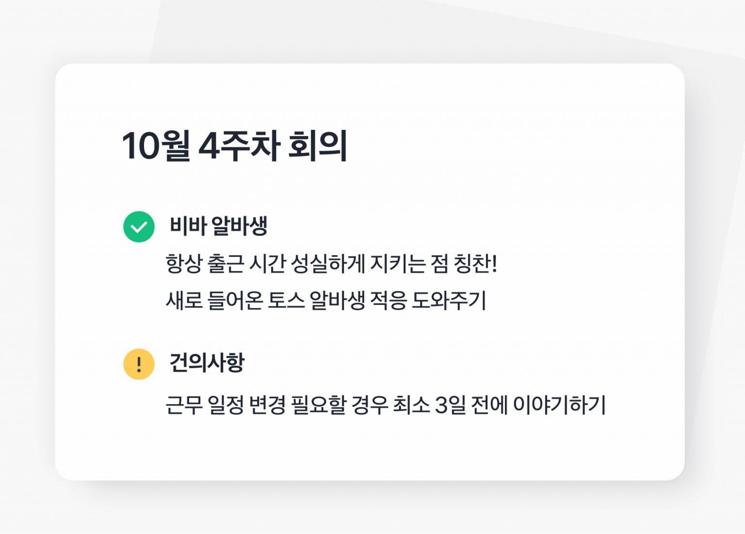 이렇게 정기적으로 이야기를 나누며 빠르게 불만사항을 해결해 나간다면 알바생이 더 즐거운 마음으로 오래 일할 수 있을 거예요. 그 과정에서 사장님이 미처 생각하지 못했던 개선점이나 아이디어를 발견할 경우, 서비스 퀄리티를 더욱 향상시킬 수 있어요.