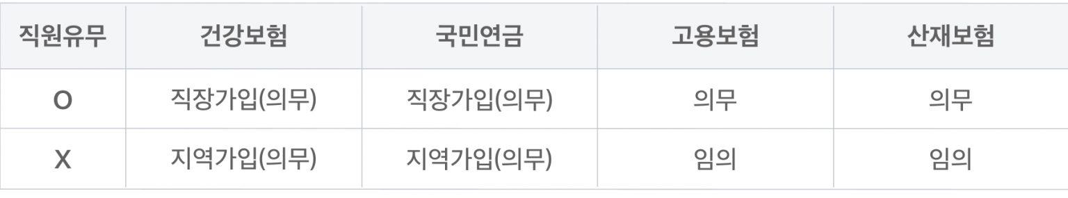- 1인 사업자라도 4대보험은 반드시 가입해야 해요.