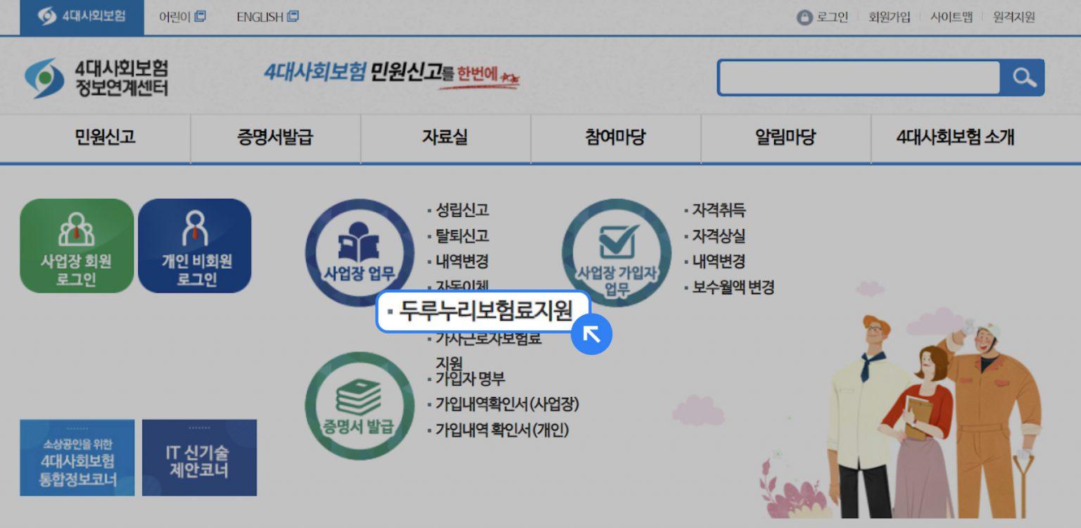 자세한 보험료 지원 방법과 지원이 제외되는 대상 등은 두루누리 사이트에서 바로 확인이 가능하고, 4대사회보험 정보연계센터의 ‘두리누리보험료지원’ 메뉴에서 바로 신청할 수 있어요.