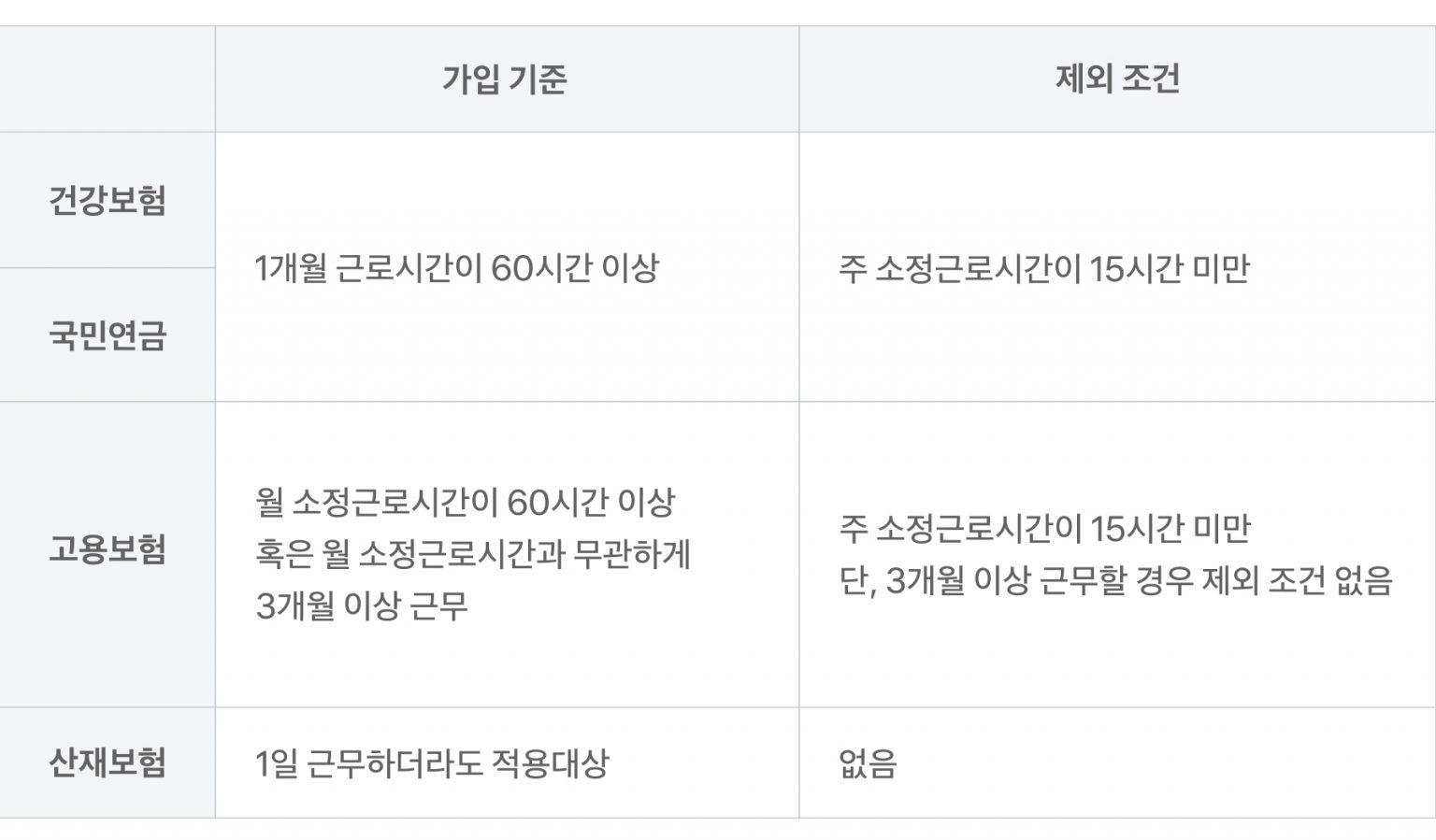본격적으로 진행하기 전, 가입 기준부터 확인해 보세요. 언뜻 ‘정직원만 4대보험 가입자일까’ 생각할 수도 있지만 아르바이트생도 근로자로서 요건에 해당하면 의무 가입대상에 포함돼요. 이때 4대보험에 가입하지 않으면 과태료가 부과되고, 정부 지원금 혜택을 받기도 어려워지니 아래 기준을 꼭 확인해 주세요.