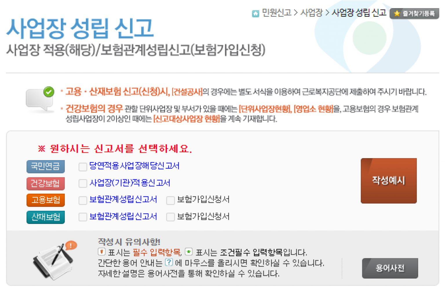 STEP 1. 4대보험 사업장 성립 신고하기