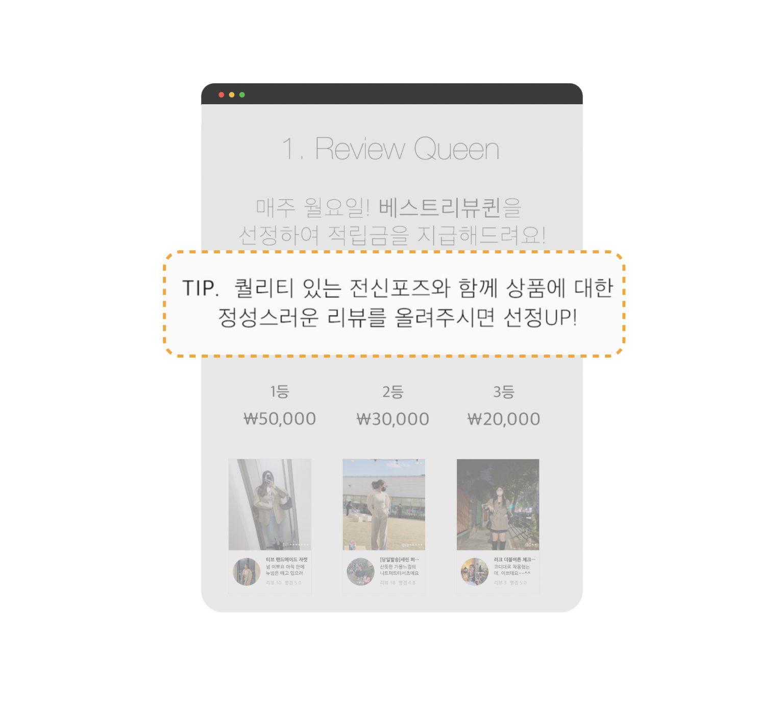 - 리뷰 작성 가이드를 명확히 제시하고 리뷰 이벤트를 진행하면 양질의 리뷰를 모을 수 있어요.