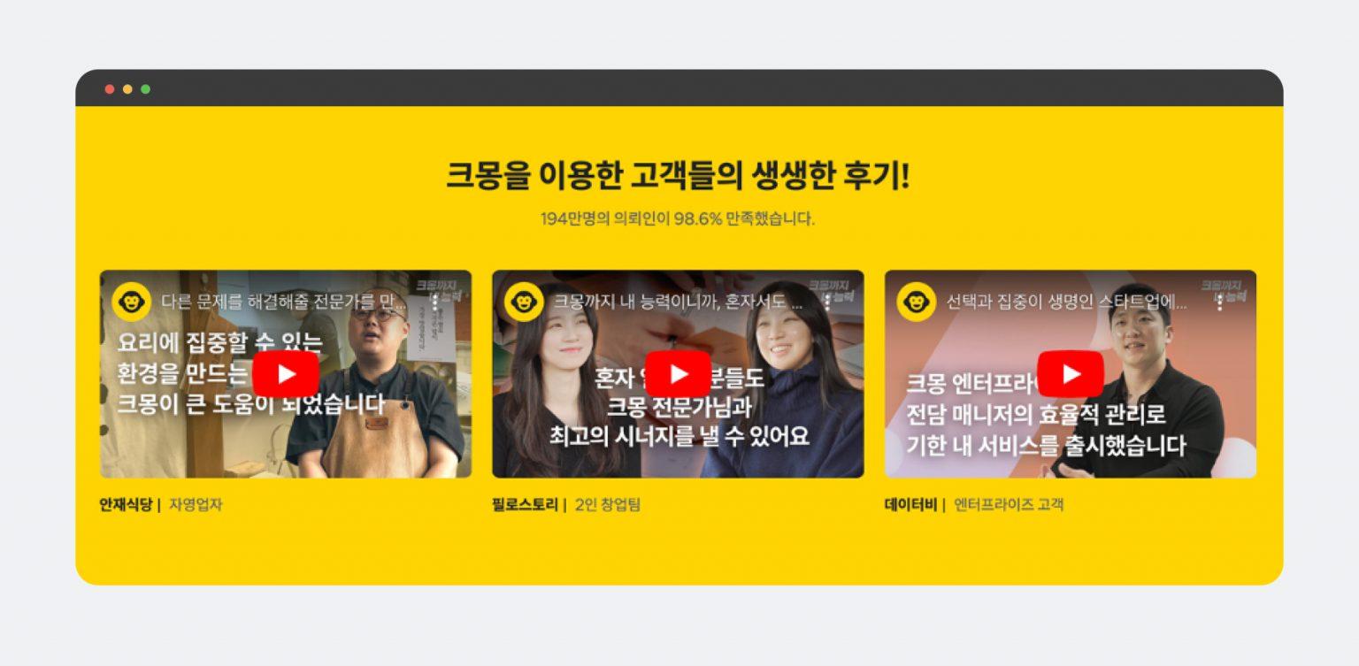 이렇게 모은 리뷰는 좋은 마케팅 소재로도 활용할 수 있어요. 고객의 생생한 목소리를 통해 제품의 장점을 자연스럽게 어필하고, 많은 고객들이 가지는 궁금증도 해소할 수 있죠. 사장님이 직접 얘기하는 것보다 신뢰도가 높고, 광고가 아닌 정보처럼 보이는 것도 장점이에요.
