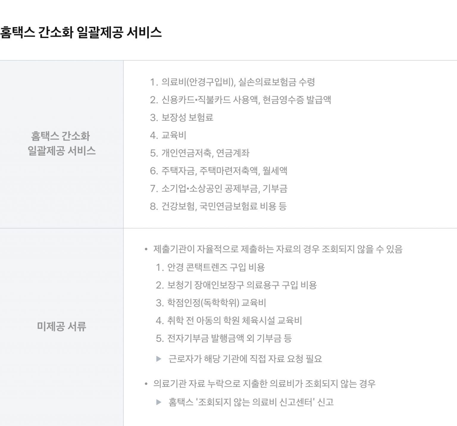 - 홈택스 연말정산 간소화 일괄제공 서비스를 이용할 경우, 연말정산에 필요한 대부분의 자료를 간편하게 제공받을 수 있어요.