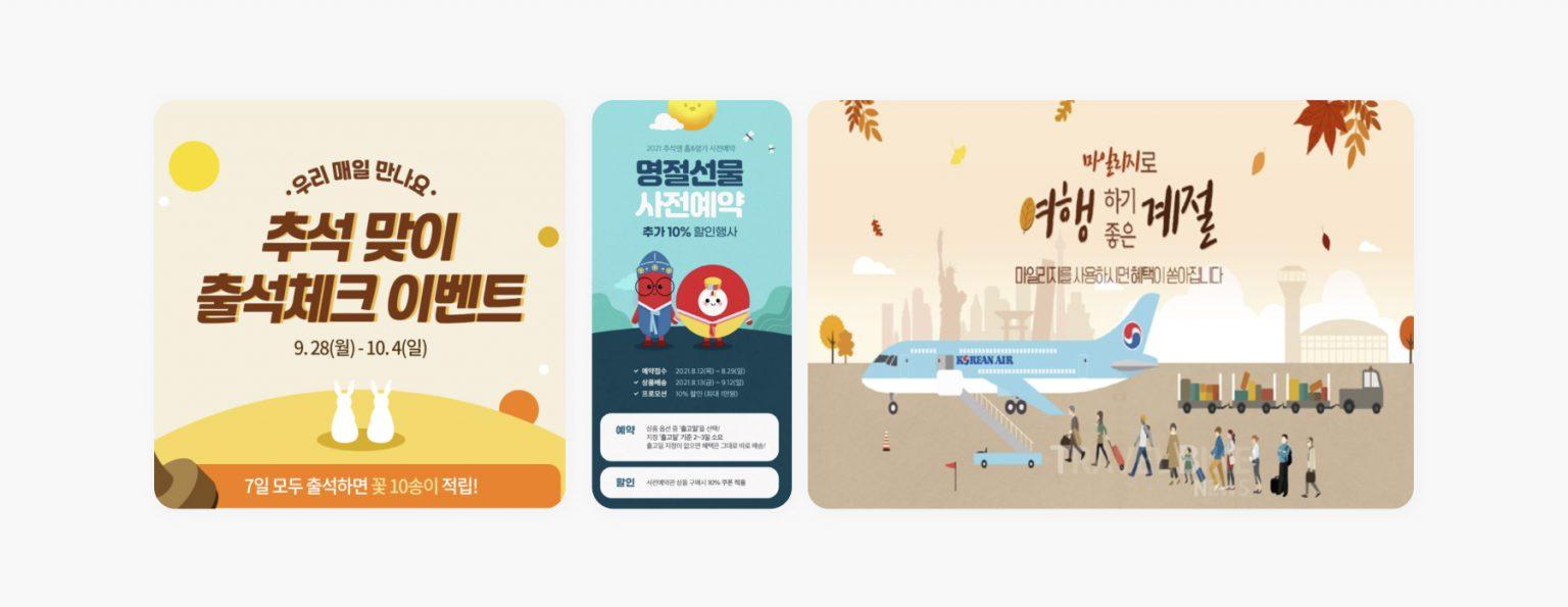 1년 중 설 연휴 이외 가장 큰 명절인 추석. 덕분에 9월에는 추석 연휴 전후로 프로모션이나 이벤트를 많이 볼 수 있어요. 이때는 추석과의 연결 고리를 잘 만들면 업계 상관없이 프로모션을 진행해도 좋은 시기에요.