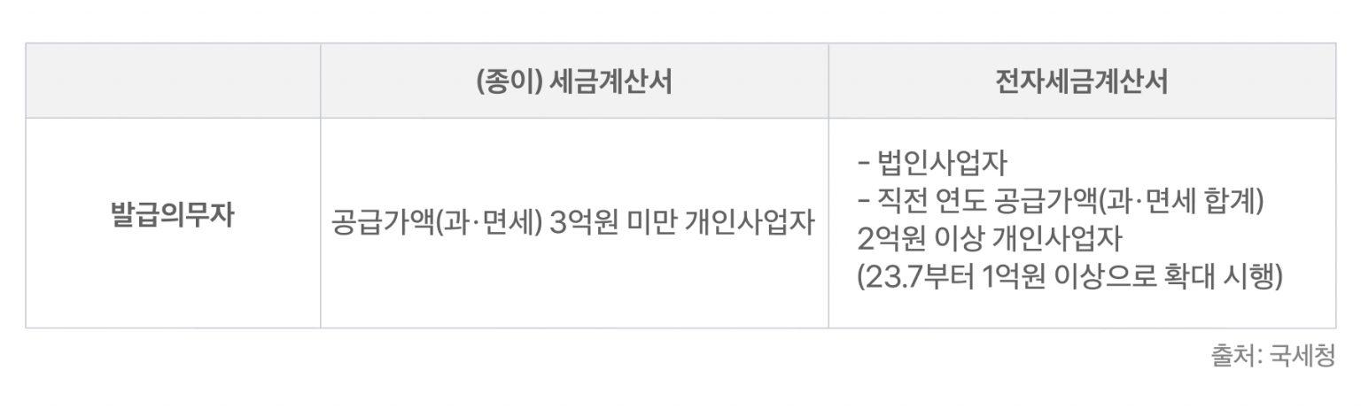 📢 세금계산서 · 현금영수증 관련 항목이 달라져요