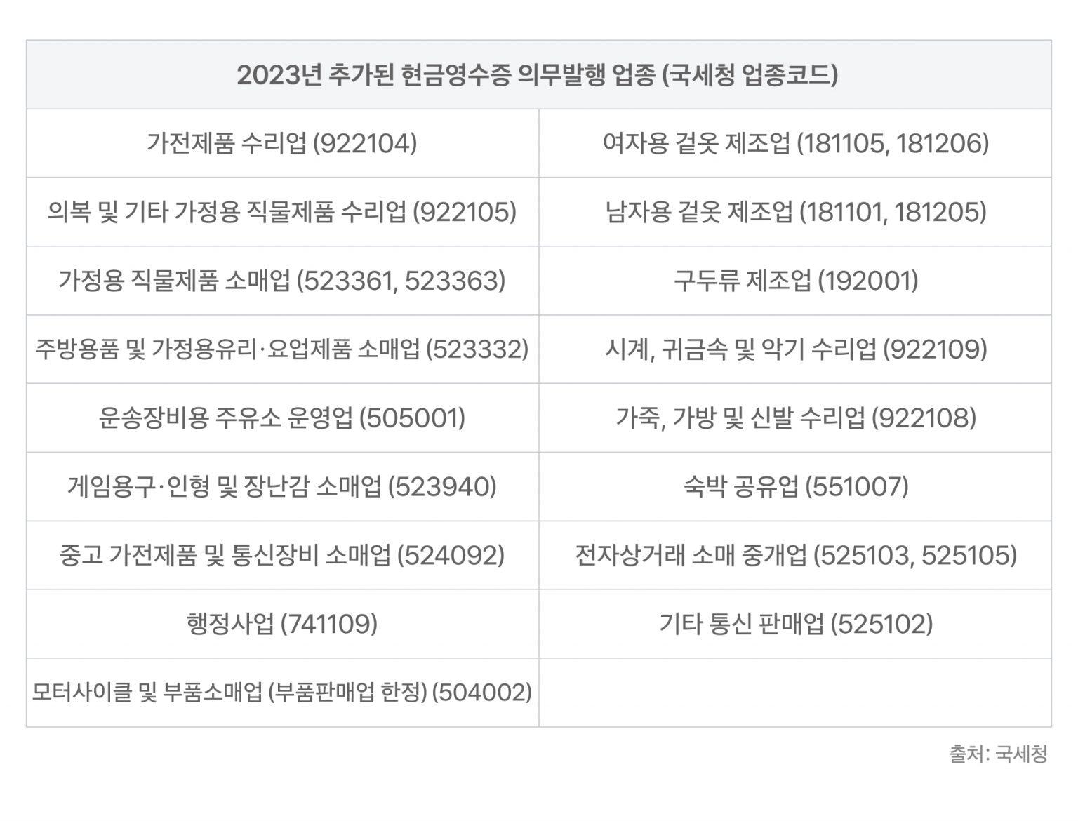 ✅ 현금영수증 의무발행 업종이 17개 추가돼요