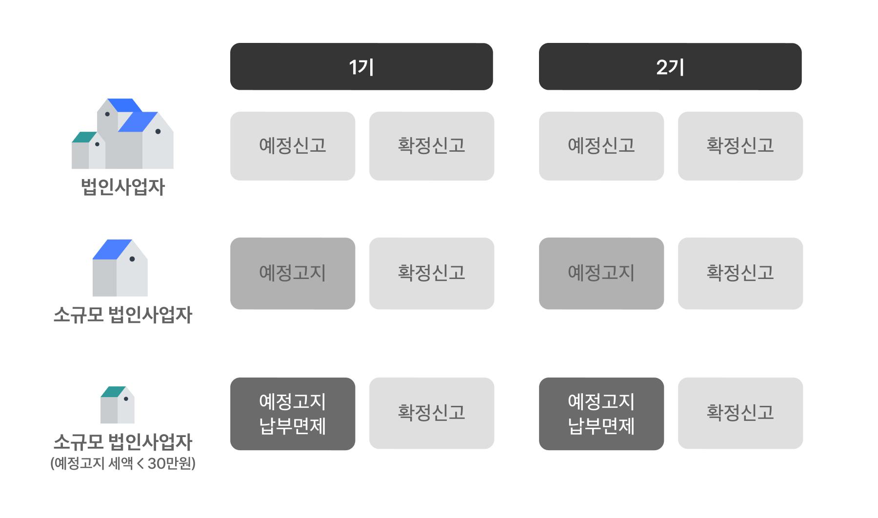 - 법인사업자는 매년 총 4번의 부가세 신고를 해야 하지만, 소규모 법인사업자에 해당한다면 부가세 예정신고 의무가 면제돼요.