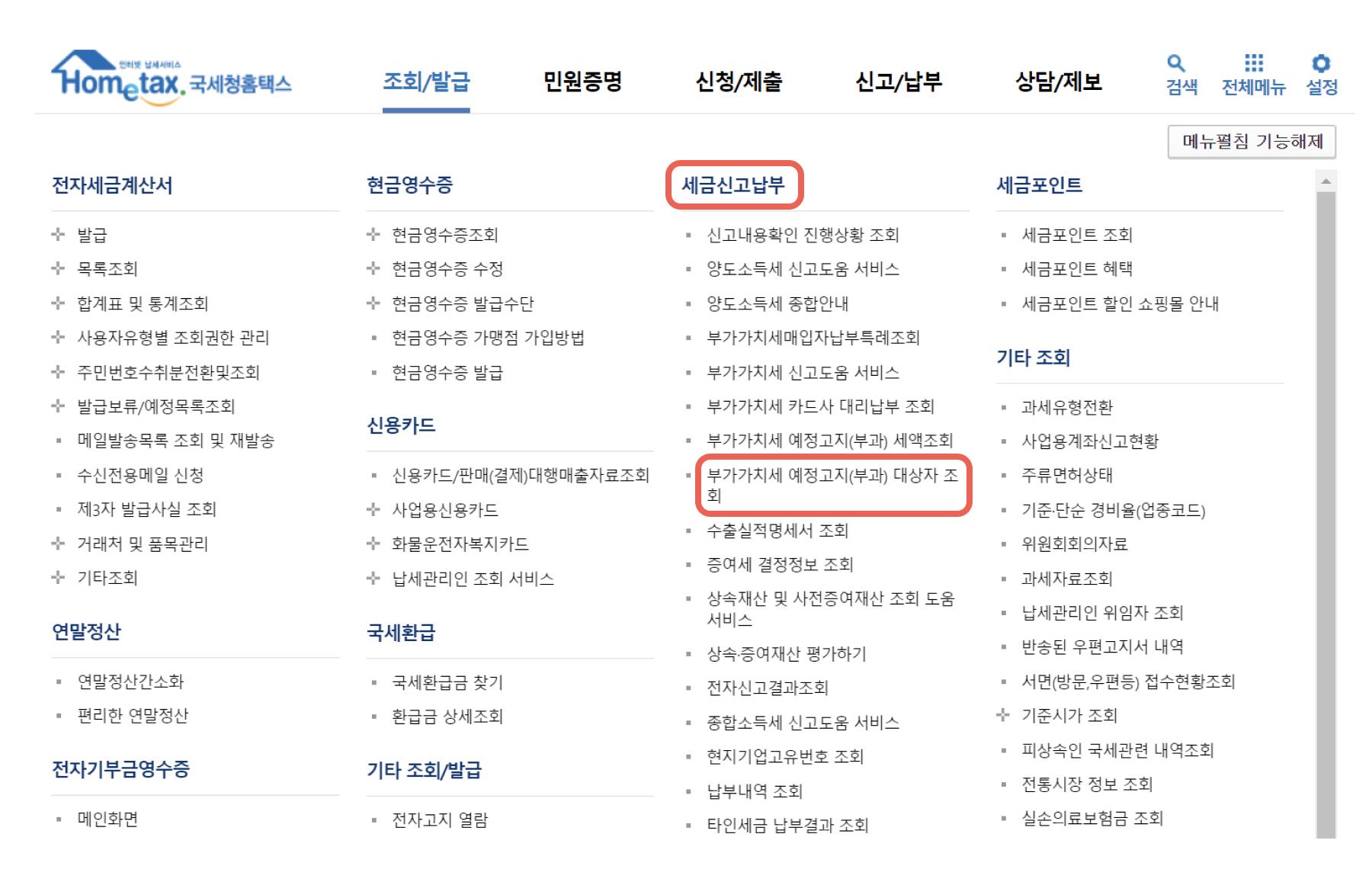 step 1. 부가세 예정고지 대상자 여부 확인하기