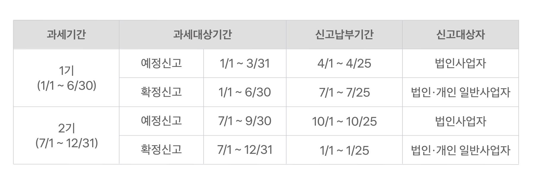 Q. 법인사업자 부가세 신고 기간은 언제인가요?