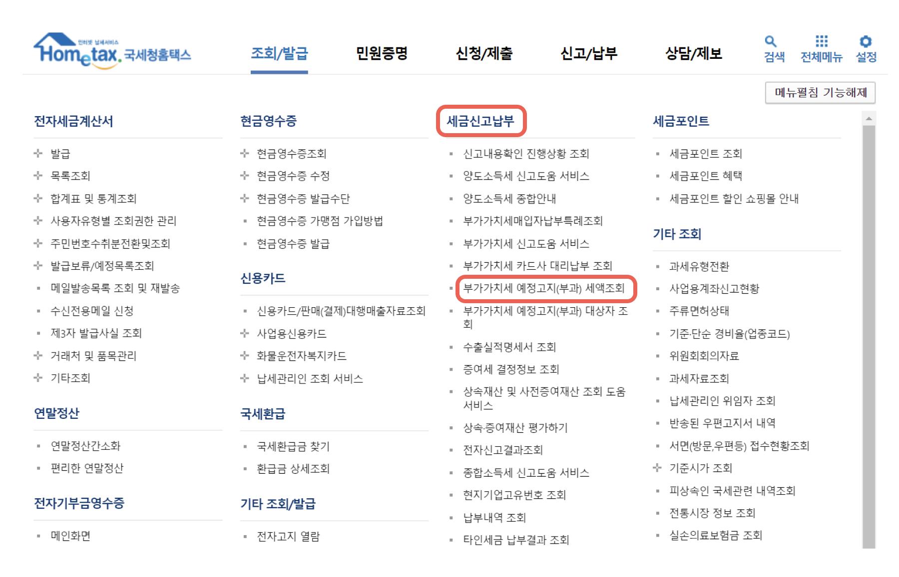 step 2. 부가세 예정고지 세액 조회하기