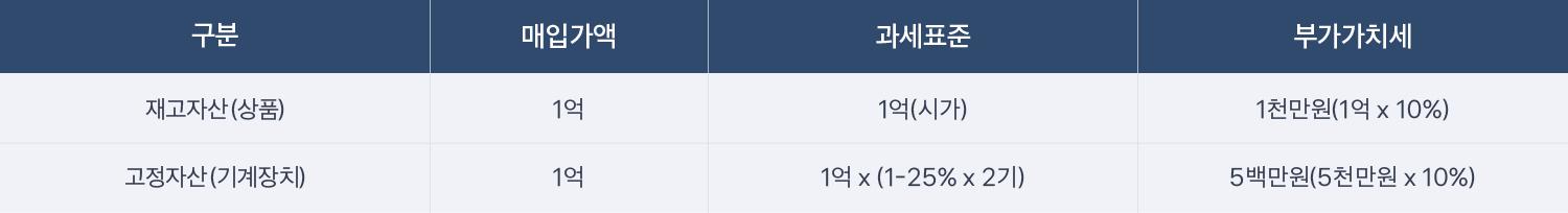 이처럼 재화 종류마다 과세표준이 다른데요. 예를 들어 보겠습니다. 사장님이 1억원에 해당하는 상품을 매입한 후 1년 동안 열심히 사업을 하다가 폐업하는 경우와, 1억원에 해당하는 기계를 매입한 후 열심히 사업하다가 폐업하는 경우의 폐업 시 잔존재화에 대한 부가세를 비교해 보겠습니다.