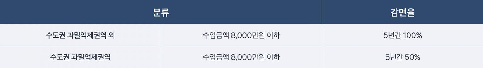 이 또한 5년간 세금 감면을 받을 수 있습니다. 단, 5년의 기간 중 연간 수입금액이 8천만원 이하인 기간에만 가능합니다.
