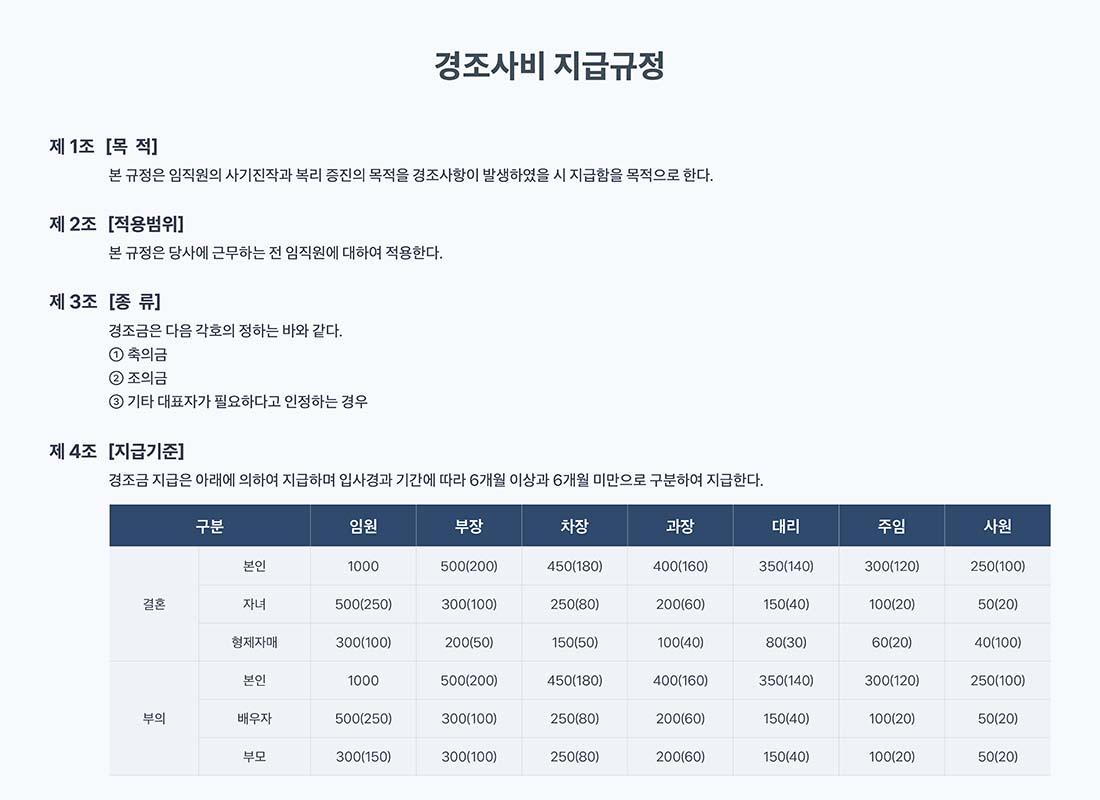 ✅ 임직원에게 지급하는 경조사비임직원에게 지급하는 축의금이나 부조금 등의 경조사비를 세법에서 ‘복리후생비’로 정의합니다. 복리후생비는 보수 외에 근로자의 복지와 후생을 위해 지불하는 경비를 말합니다. 회사를 다녀본 사장님이라면 회사의 복리후생 내규를 보신 적도 있으실 텐데요.