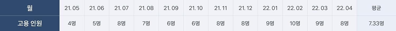 A기업에서 1년 동안 고용보험에 가입한 직원 수의 평균은 7.33명입니다. 월별 인원을 다 더한 다음 12로 나눈 수치죠. 7.33명은 소수점을 올림하여 8명으로 칩니다. 이 기업은 1년 평균 고용보험에 가입한 직원 수, 즉 피보험자 수가 5명을 넘기 때문에 신청할 수 있습니다.