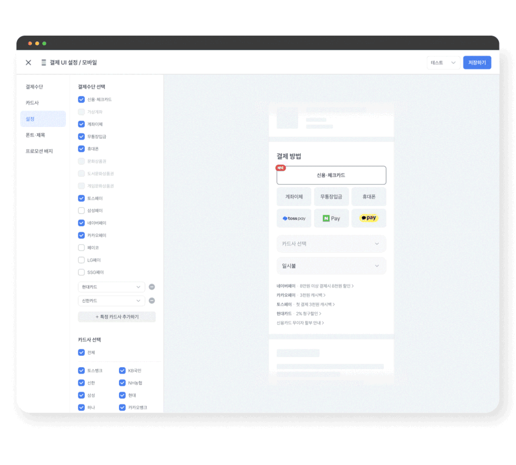 2️⃣ 결제위젯은 UI가 직관적이고, 노코드 운영 방식인 덕분에 개발자 없이도 자유롭게 커스터마이징할 수 있어요.