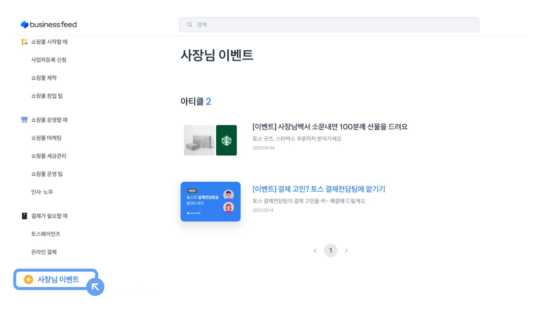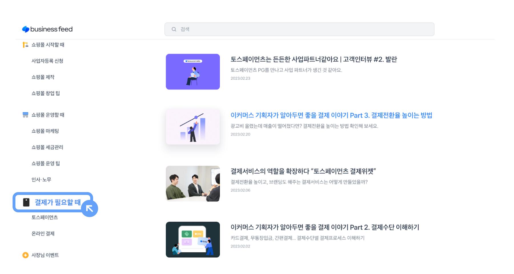 1️⃣ 사업하다 궁금할 때 토스페이먼츠피드에서 검색해 보세요