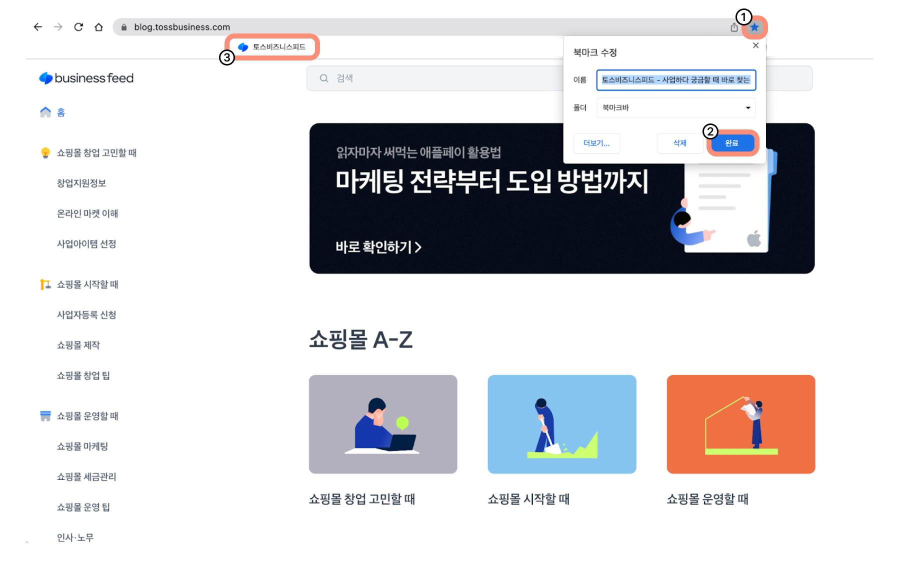 크롬 주소창 오른쪽에 있는 ☆ 아이콘을 누르면 북마크바에서 바로 토스페이먼츠피드에 접속할 수 있어요.