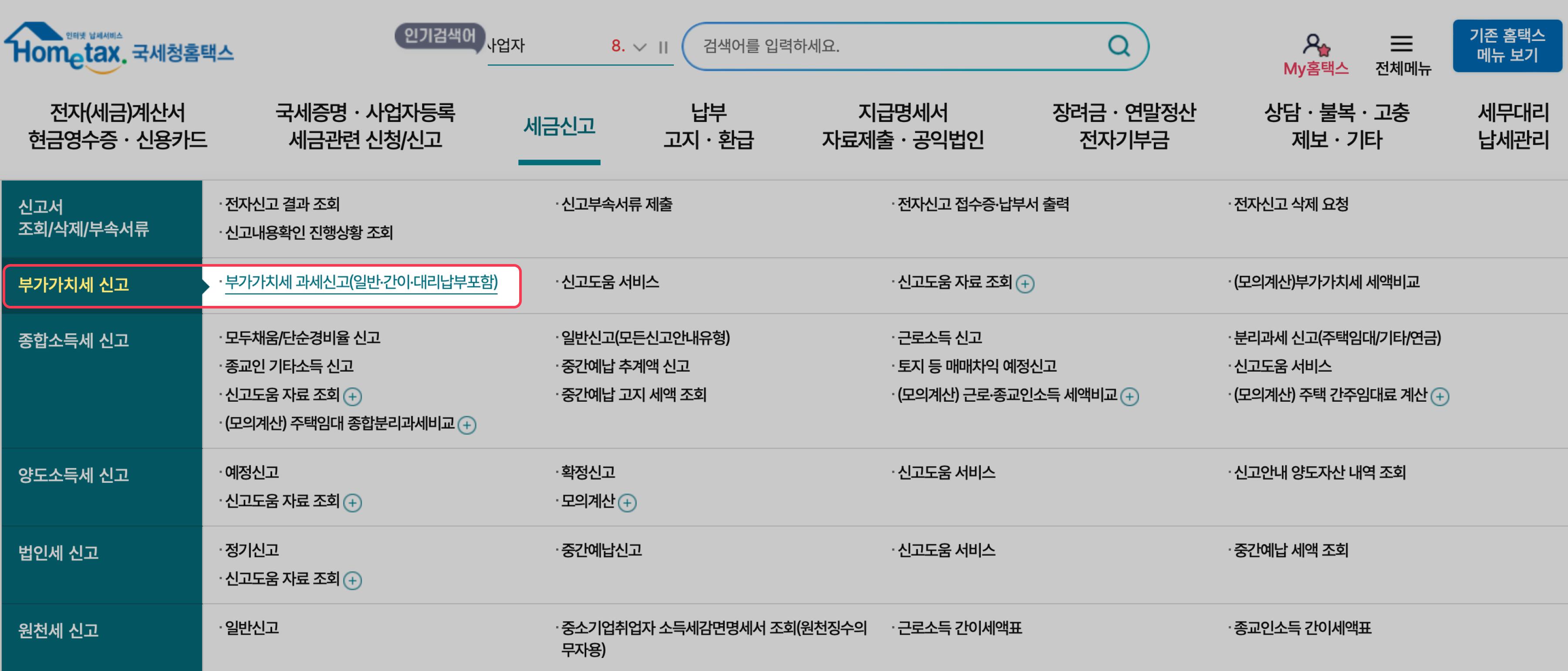 다가올 1월에는 일반과세자와 간이과세자 모두 확정신고를 해야 해요. 국세청 홈택스 홈페이지 로그인 후 순서대로 [세금신고 → 부가가치세 신고] 탭으로 들어가 내용에 맞게 기재하고 신고를 완료하면 되는데요.
