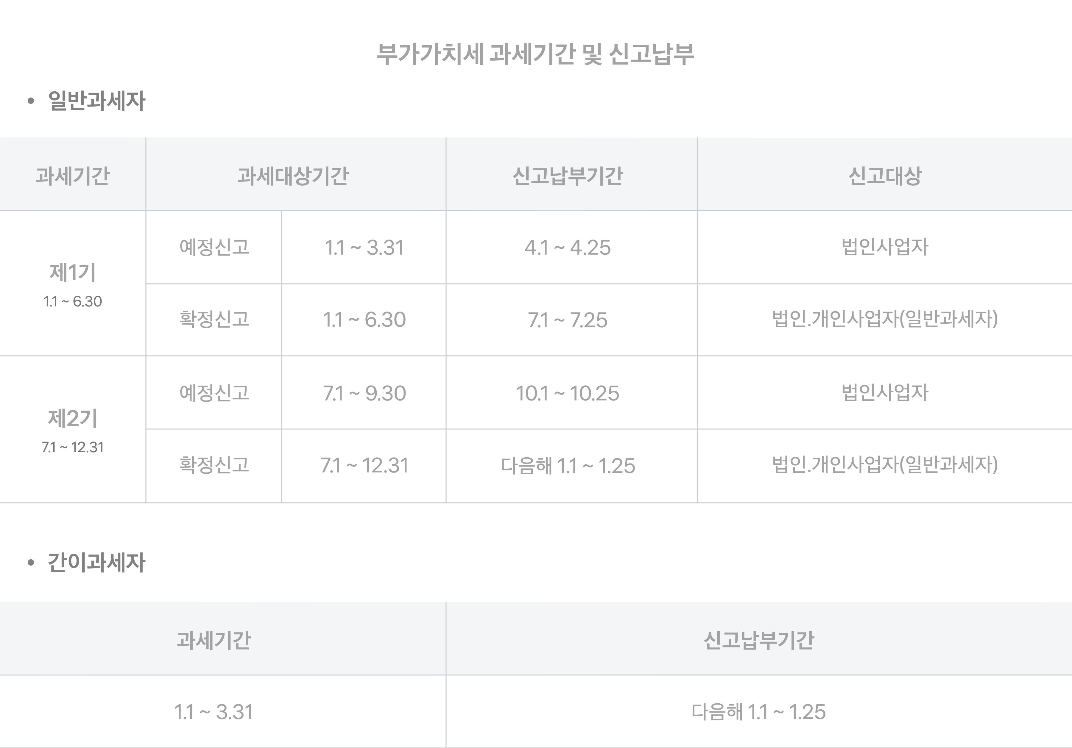 2️⃣ 일반과세자와 간이과세자의 부가가치세 신고 기간